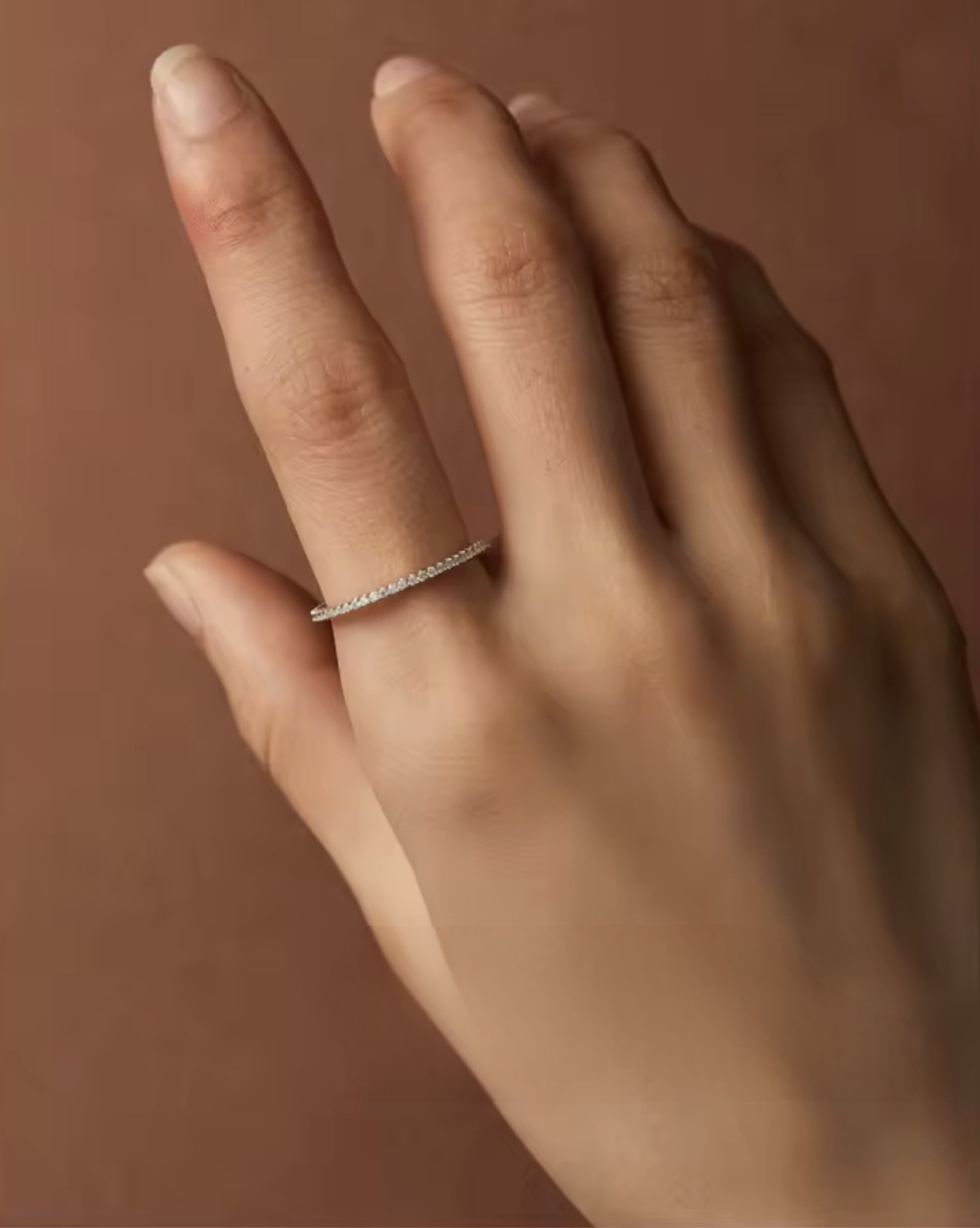 Вземете пръстен, който знаете че става и се носи редовно, и измерете вътрешния му диаметър с линия или шублер. Ако разполагате само с рулетка или метър – измерете обиколката на пръста, на мястото където ще се носи пръстенът.