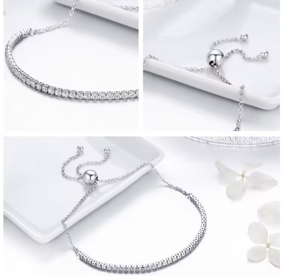 Тази гривна не просто блести – тя излъчва увереност. Цялата обсипана с искрящи мойсанити, които улавят всяко движение и го превръщат в блясък. Нежна, но впечатляваща. Фина, но категорична. Създадена за жени, които не се нуждаят от повод, за да сияят. Подходяща както за специални вечери, така и за дните, в които просто искаш да носиш нещо красиво – за себе си. Бъди уникална с „Диамантена хармония“!